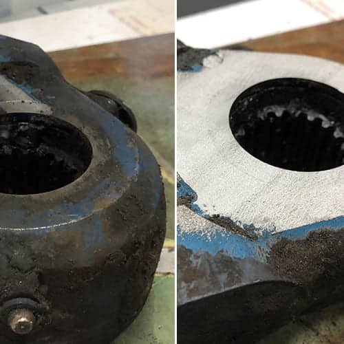 Burnt deposits: Carbonized oils, heat-damaged lubricants Mixed contamination: Oil plus dirt, rust, or paint layers