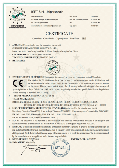 All precision laser cleaning system units carry CE marking indicating compliance with European health, safety, and environmental protection standards.